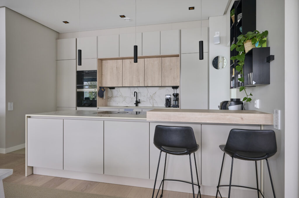 Kotiin valittiin Noblessan keittiö ja tilankäytöllisesti niemeke oli parempi ratkaisu kuin saareke.