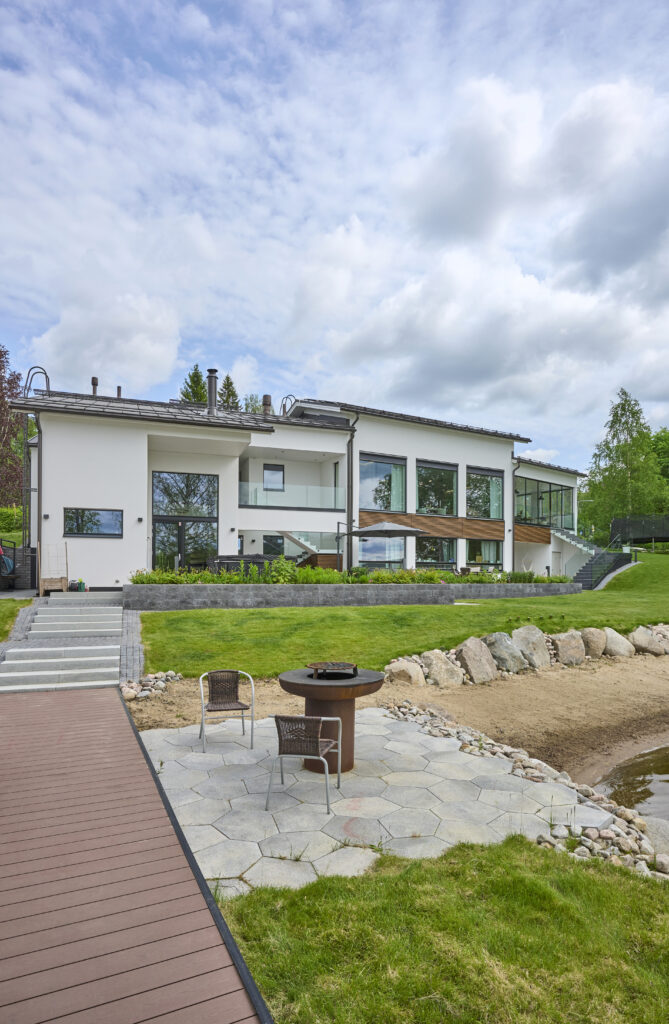– Kun tontti oli raivattu vesakosta, tuli Minna tänne paikan päälle fiilistelemään ja sommittelemaan, millainen kokonaisuus sopisi tontille parhaiten. Jo kolmas luonnosversio oli mielestämme meille täydellinen.